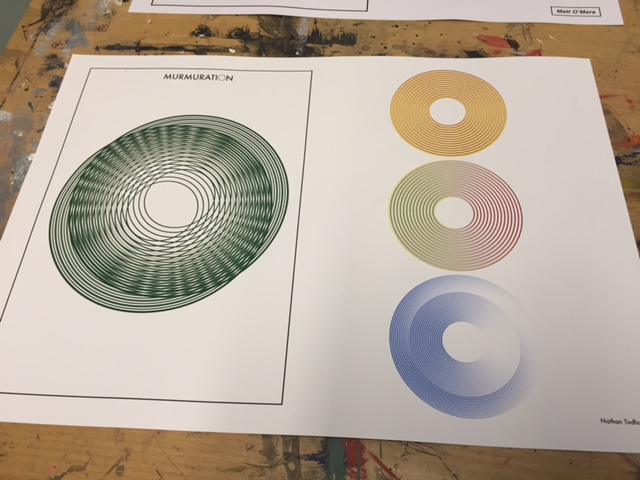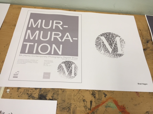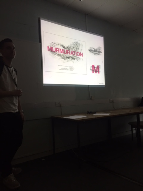 Today we met the 2nd year graphics students they were pitching ideas for the logo for our third year show Murmuration here are some of their ideas: